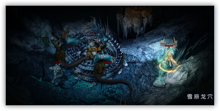黑暗如浓稠墨汁般灌满蜿蜒的密道,冰雪凝筑的洞穴里冰棱倒挂,泛着刺骨寒光,尽头传来的龙吟低沉厚重,冰风漩涡与之相呼应,令人心头发颤。