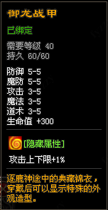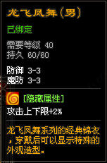 三、调整锦衣“龙飞凤舞”、“御龙典藏”的隐藏属性为提高本职业攻击上下限。